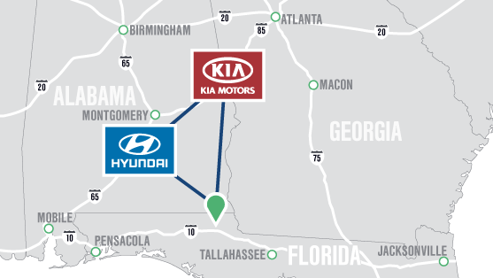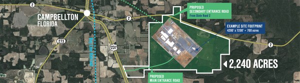 The 2,240-acre (906-hectare) Florida–Alabama Mega Site lies just south of the Florida–Alabama state line in the Florida Panhandle. Its vast size, easy access to an extensive transportation network, and proximity to numerous automotive parts suppliers make this the ideal home for a large automotive manufacturing facility.